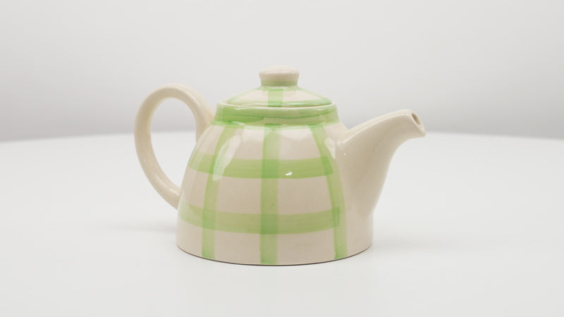 Checked 1,200ml Handmade & Hand-Painted Stoneware Teapot | Lively Green