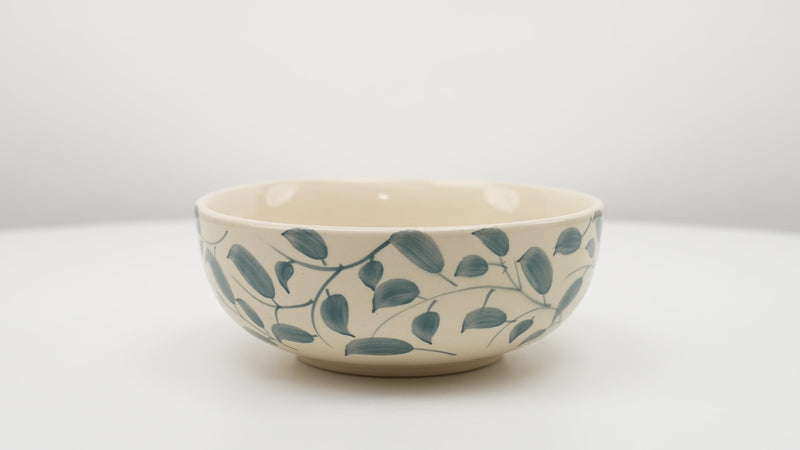 Serve beautifully. This set of 2 handmade & hand-painted stoneware bowls features a graceful blue scroll design, blending traditional craftsmanship with modern elegance. Crafted from specialist clay and fired at high temperatures for lasting durability and a refined finish. Perfect for salads, curries, or shared meals.